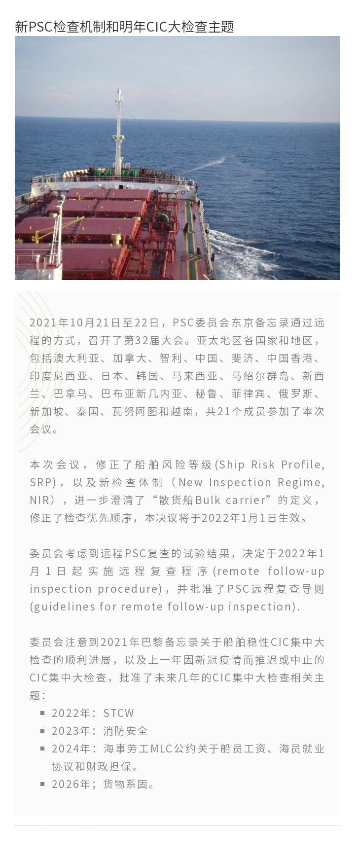 新PSC檢查機制和明年CIC大檢查主題